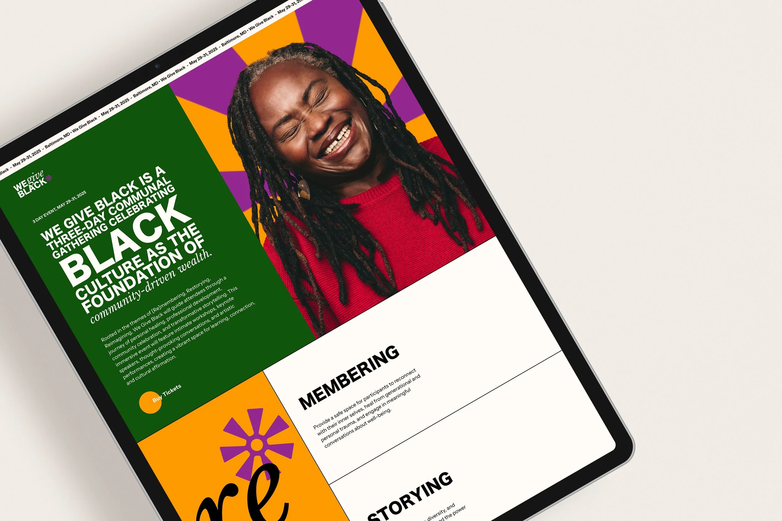 We Give Black is a powerful three-day festival in Baltimore that celebrates Black-led change, collective giving, and cultural excellence. The event needed a website that could capture the energy of the in-person experience while serving as a central hub for attendees, sponsors, vendors, and community partners. The challenge was to design a site that balanced function and storytelling—providing easy access to the event schedule, speakers, and tickets—while honoring the culture and movement it represents.